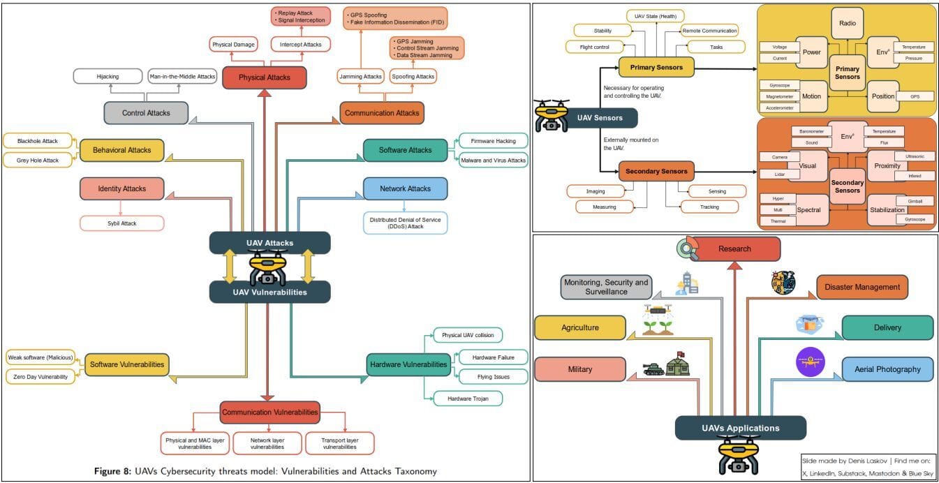 Denis Laskov on LinkedIn - Cybersecurity of modern UAV: attacks on flying IoT with sensors, internet, and embedded AI (link)